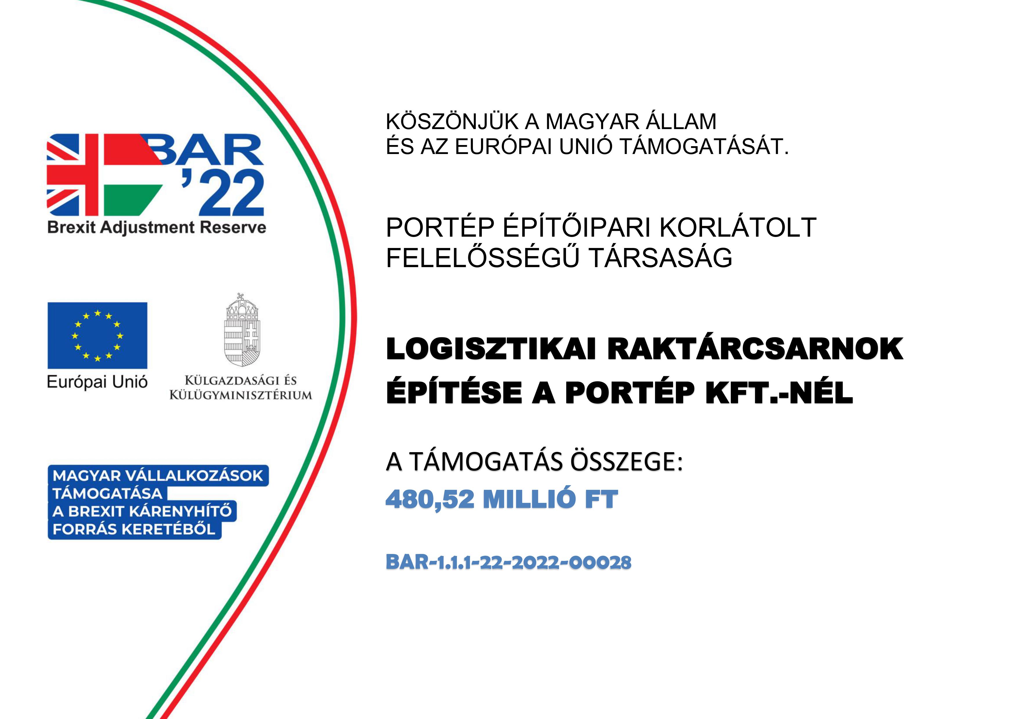 A fejlesztés tárgya, célja: A projekt célja, a PORTÉP Építőipari Korlátolt Felelősségű Társaság részére támogatás biztosítása azon negatív gazdasági hatások ellensúlyozására, amelyek az Egyesült Királyságnak az Európai Unióból történt kilépése nyomán szenvedett el.